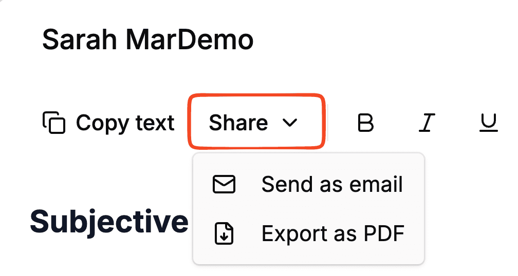 - Copy to Clipboard: Click Copy text to copy the entire formatted note