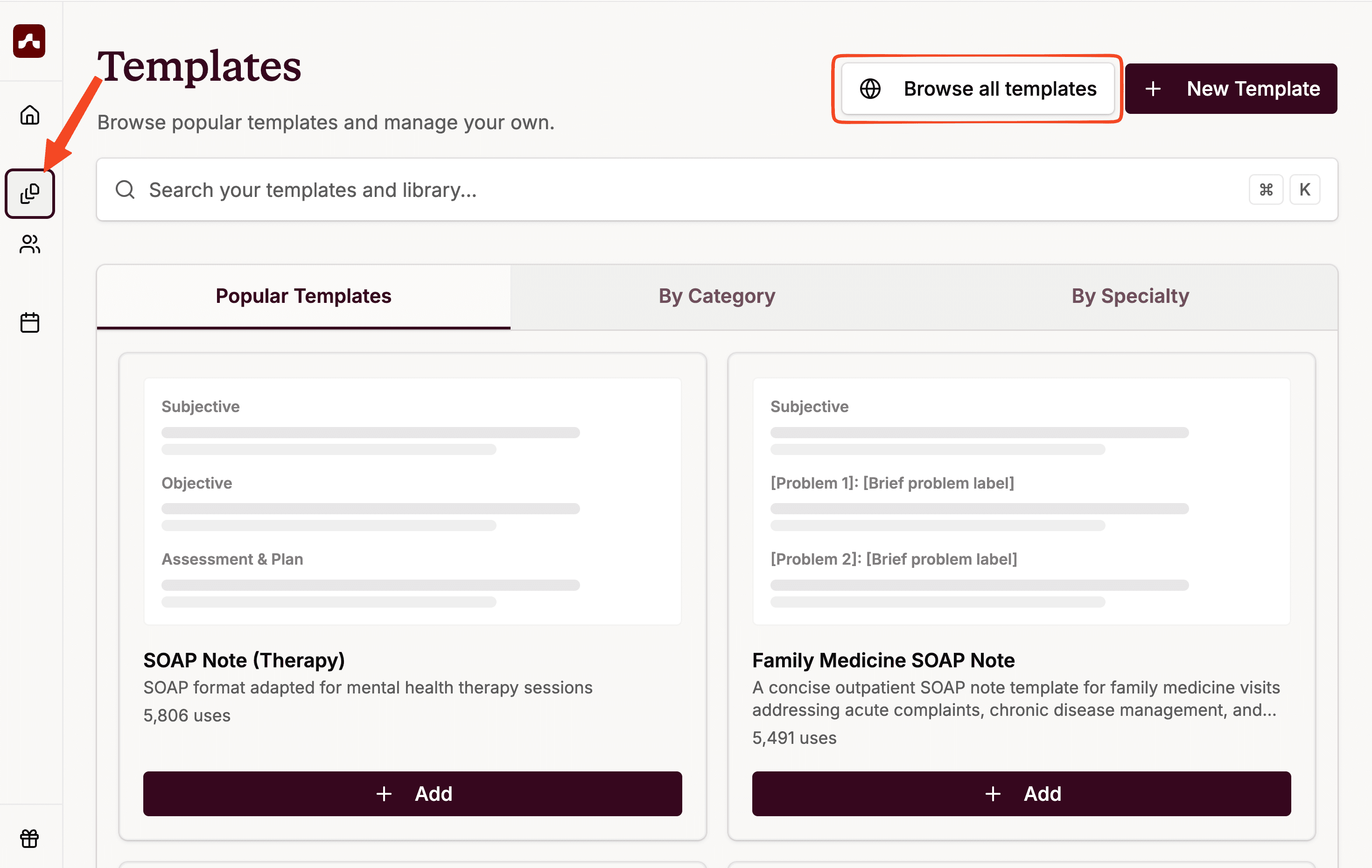 Scope Health provides a comprehensive library of professionally-designed clinical documentation templates, ready to use across every medical specialty.